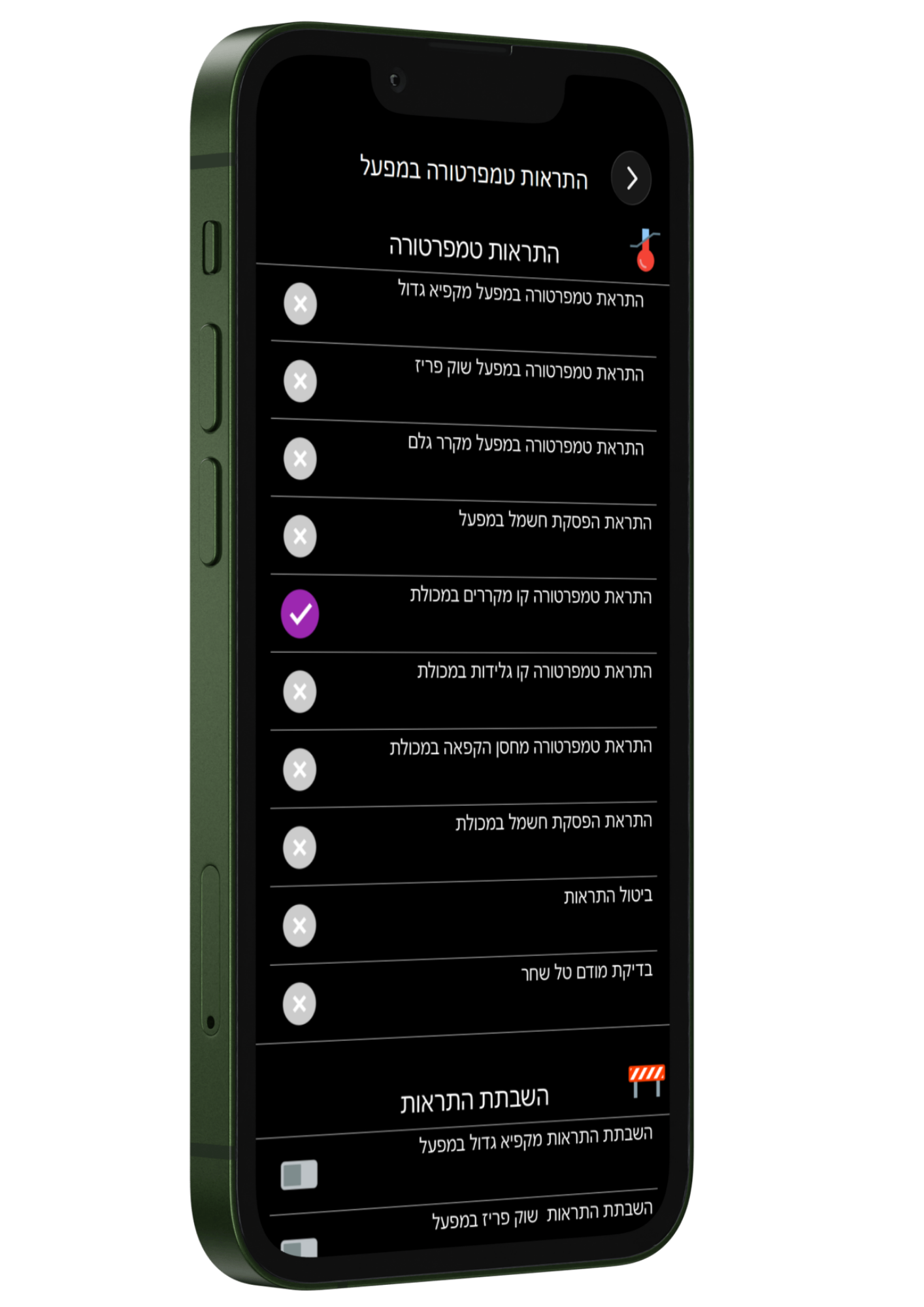 - להגדיר ספי טמפרטורה וזמני חריגה